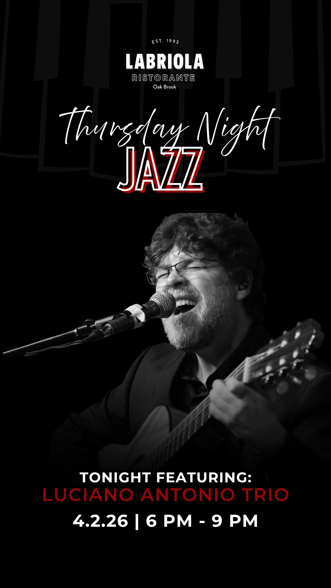 We’re bringing live jazz to our Oak Brook restaurant every single Thursday. Thursday Night Jazz pairs smooth, live jazz with great food, great drinks, and an atmosphere that feels equally relaxed and special.