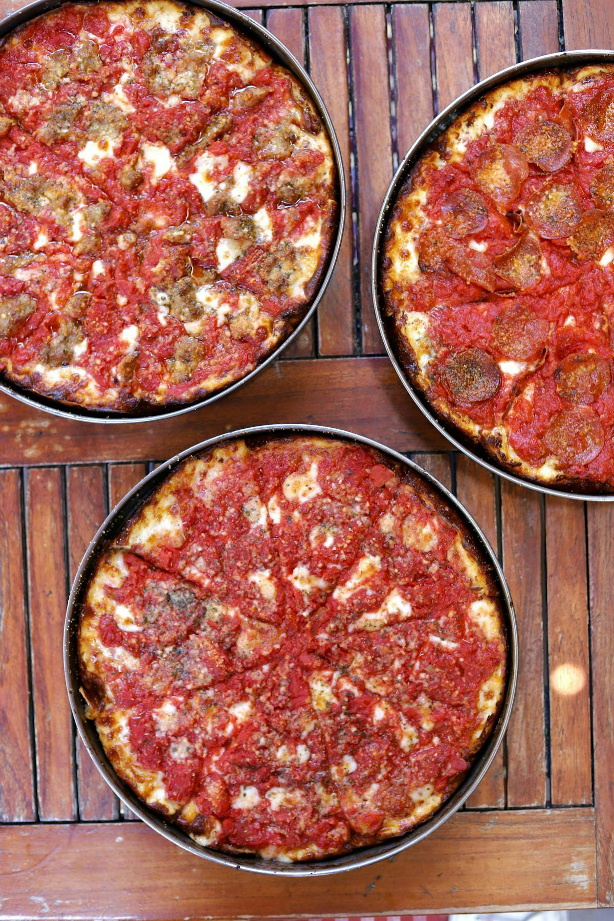 Our Deep Dish Pizza starts with a focaccia-style dough that’s double-proofed before being layered with mozzarella and ample toppings.